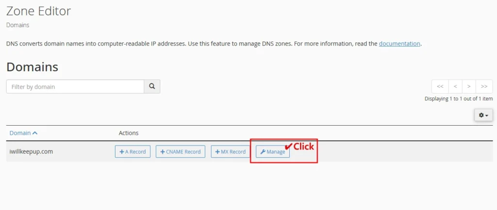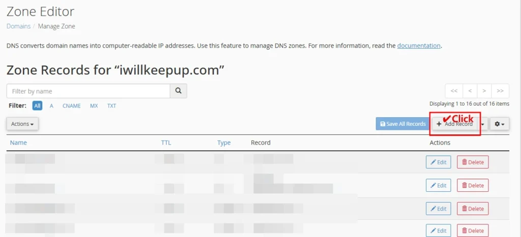 Your hosting service may offer a custom management panel instead of cPanel. In this case, locate the corresponding page for DNS management and follow the same steps to complete the verification process.