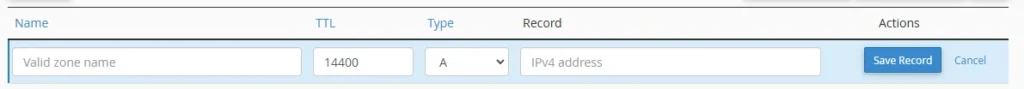 You can also verify the newly added record in the Zone Editor list. Keep the Zone Editor open as you will need it in the next steps.