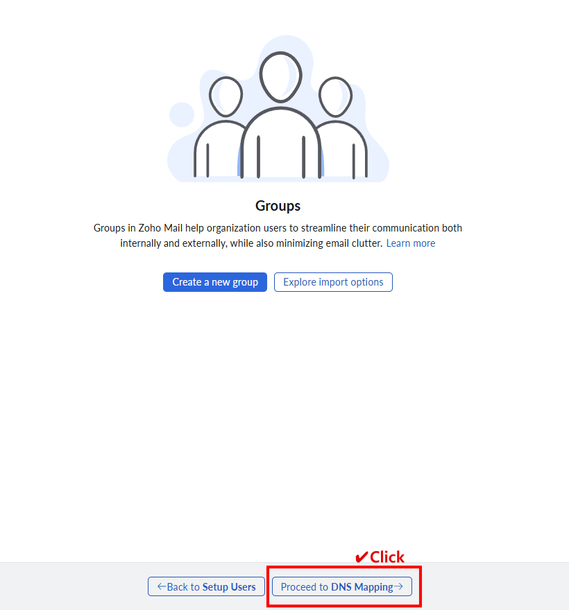 If you are setting up accounts for a team, you may need to configure Groups. However, since this guide is based on setting up a personal blog, we will skip this step. Click the Proceed to DNS Mapping button to continue.