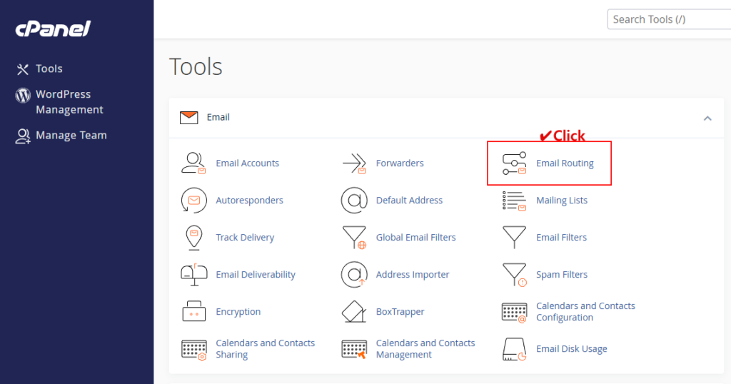 Return to the cPanel of your hosting service. Under the Email menu, you will find an option called Email Routing. Click on it to proceed.
