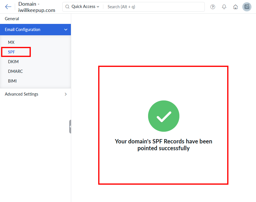 Similarly, check the SPF and DKIM records. If all of them show green check marks, your email setup should be functioning correctly.